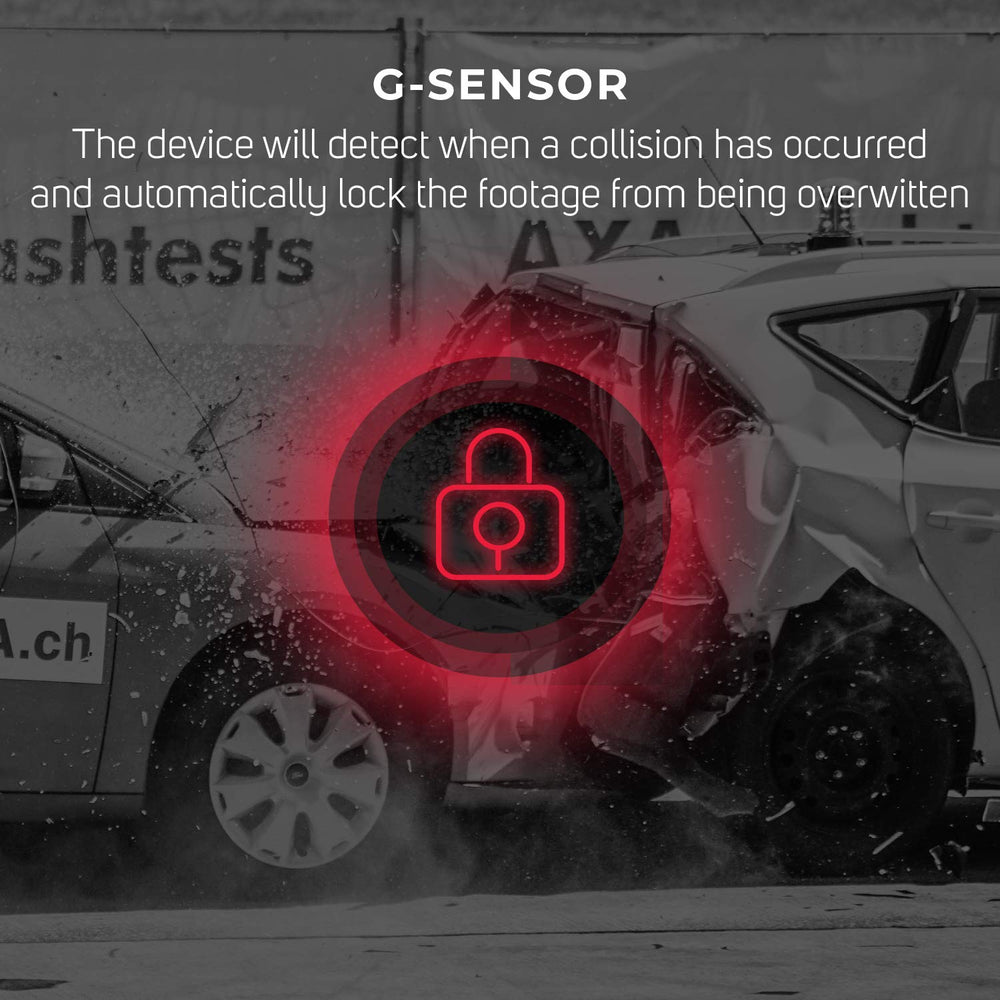 When the car is parked, the DVR can be set to Parking Mode. It will use the G-Sensor function to detect any vibrations or movements around your car and automatically start recording a 10-second video clip, which will be locked to keep it from being overwritten.