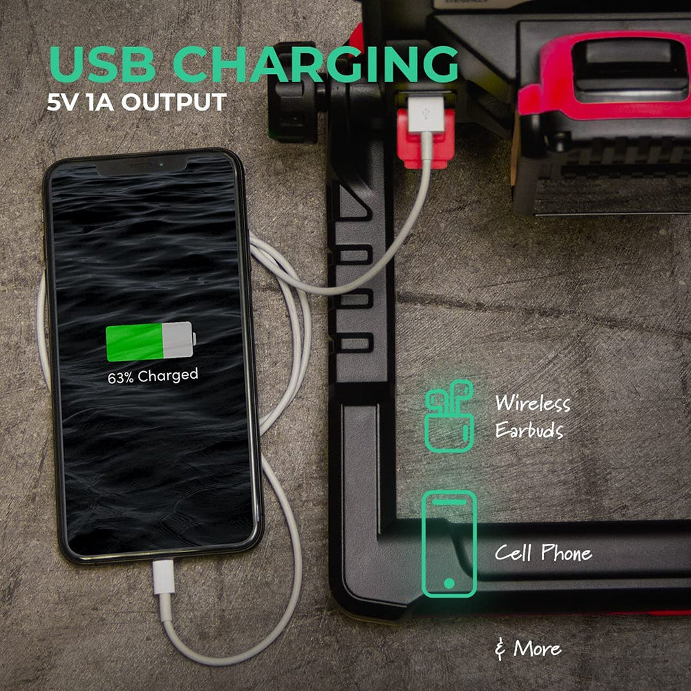 You can also use the Flood Lamp to keep your phone charged using the 5v USB output plug (1A Charging Port)!